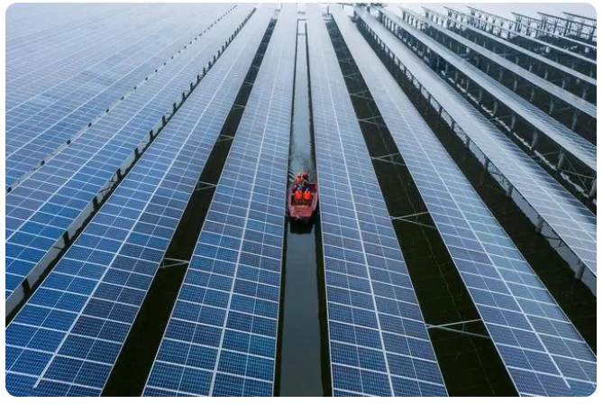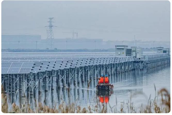 該項目位于溫州浙南產(chǎn)業(yè)集聚區(qū)甌飛圍區(qū)內(nèi)的灘涂上,占水域面積約4.7平方公里。項目將漁業(yè)養(yǎng)殖和光伏發(fā)電相結合,“上可發(fā)電、下可養(yǎng)魚”,并網(wǎng)后年平均發(fā)電量達到6.5億千瓦時